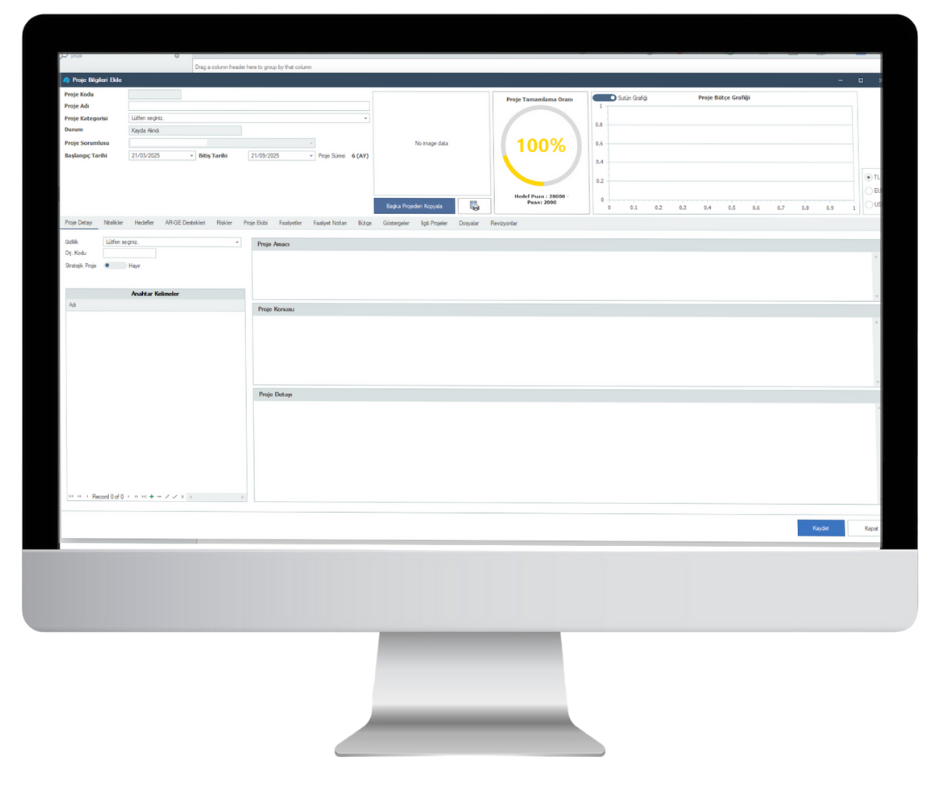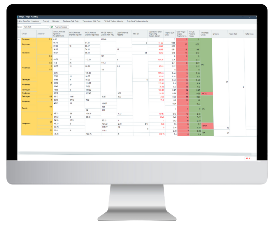 AR-GE Proje ve Puantaj Modülü, araştırma-geliştirme süreçlerinizi organize eder, çalışanlarınızın çalışma saatlerini ve katkılarını takip eder. Proje takvimlerini izleyerek, kaynakları verimli kullanır ve proje ilerleyişini raporlarsınız. Yenilikçi projeler için zaman ve kaynak yönetimini güçlendirin! 🧪🕒